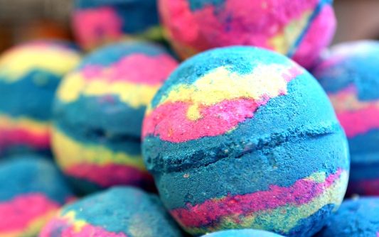 Fill your tub with warm water and drop the bomb in. The bath bomb reacts to the water as it fizzes out, releasing its scent and vibrant colors, filling the bathtub with goodness.